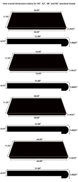 Tread is 3/4" thick with a 1-1/16" thick bullnose